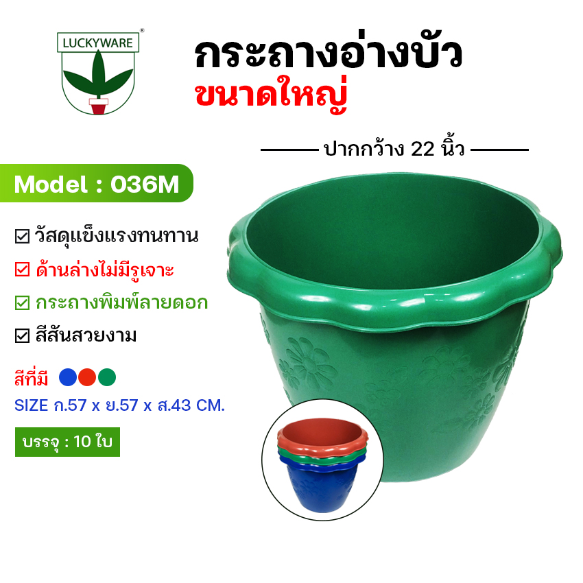 / 036M กระถางต้นไม้ อ่างบัว 22 นิ้ว สีทึบ ไม่เจาะรู (ราคาต่อชิ้น)