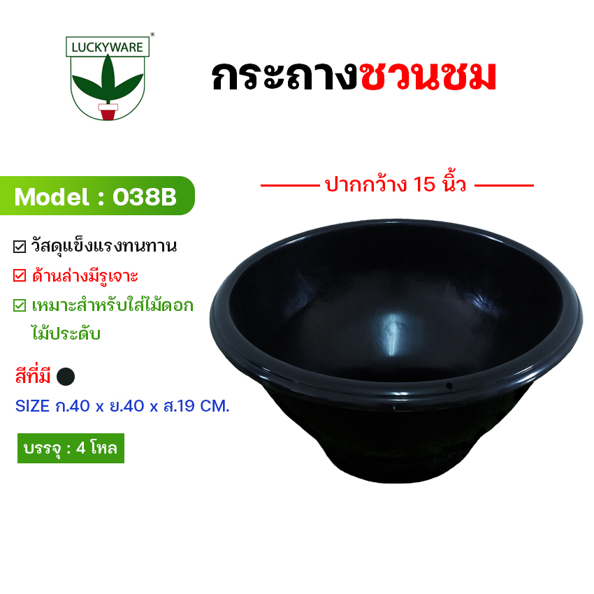 / 038B กระถางต้นไม้ปากกว้าง16นิ้ว ก้นคอด เจาะ3รู (ราคายกโหล 12 ชิ้น)