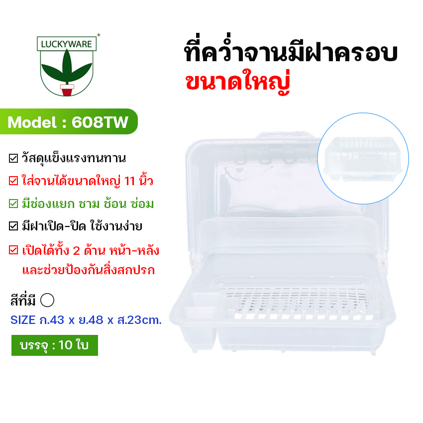 608TW ที่วางคว่ำจานพร้อมฝาครอบ+ช่องใส่ช้อนส้อมและคว่ำแก้วในตัว เกรด A (ราคายกโหล 12 ชิ้น)
